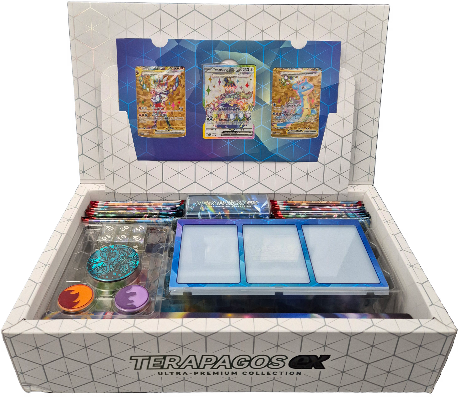 De Pokémon TCG: Terapagos EX Ultra Premium Collection bevat: